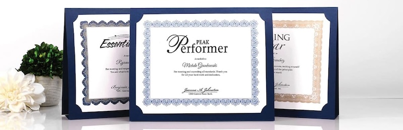 We then had the pleasure of traveling to Baudville’s headquarters in Grand Rapids, MI and then on to an off-site brainstorming session in lovely Traverse Bay, where we pitched the concept of a high-resolution laser-printer version of Award Maker. This was clearly an idea whose time had come. Laser printers were far, far easier to control than the old dot-matrix models, and produced beautiful pages at the then-amazing resolution of 300 DPI – and, with SQUARE PIXELS! Although the output was only black and white, that wasn’t a problem, because Baudville’s side business involved selling pretty paper stock for certificates. It was an ideal match.