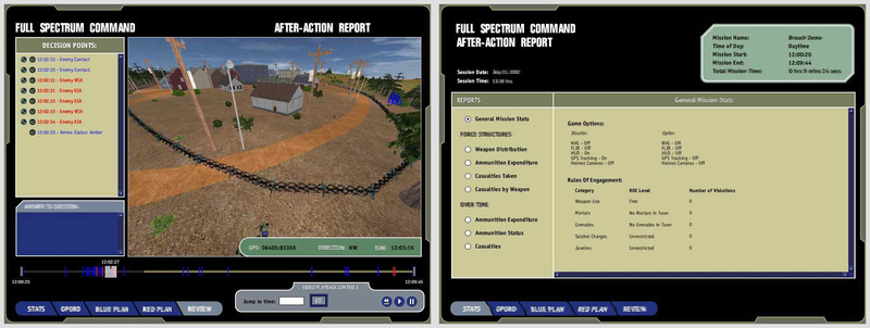 In the Army, a Company is made up of a headquarters section, several platoons, and sometimes other specialized units. In Full Spectrum Command, we enabled the company commander to specify orders for multiple platoons or other units, which would then be carried out via AI. The company commander is not typically “out front,” but instead is in a central location monitoring events and giving orders, as needed. Our user interface design reflected this primarily high-level view of the battlefield.